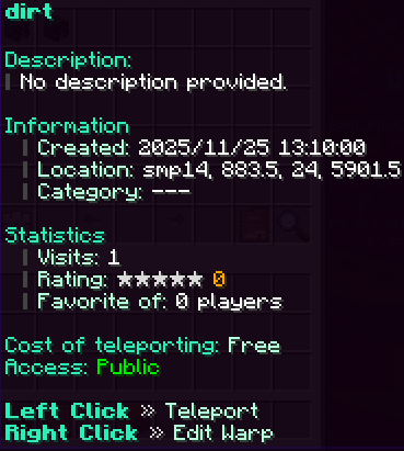 - Submit your warp into a category. (No waiting on staff to approve!)